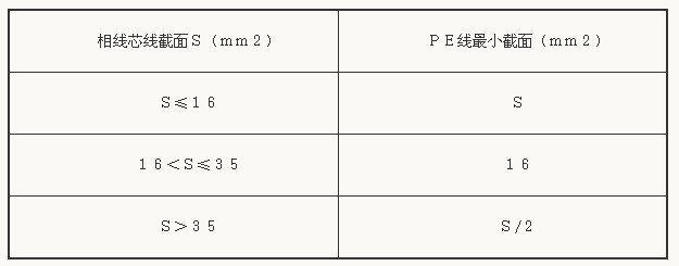 7)保護線(以下簡稱PE線)截面