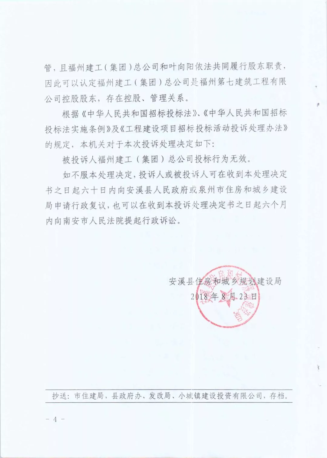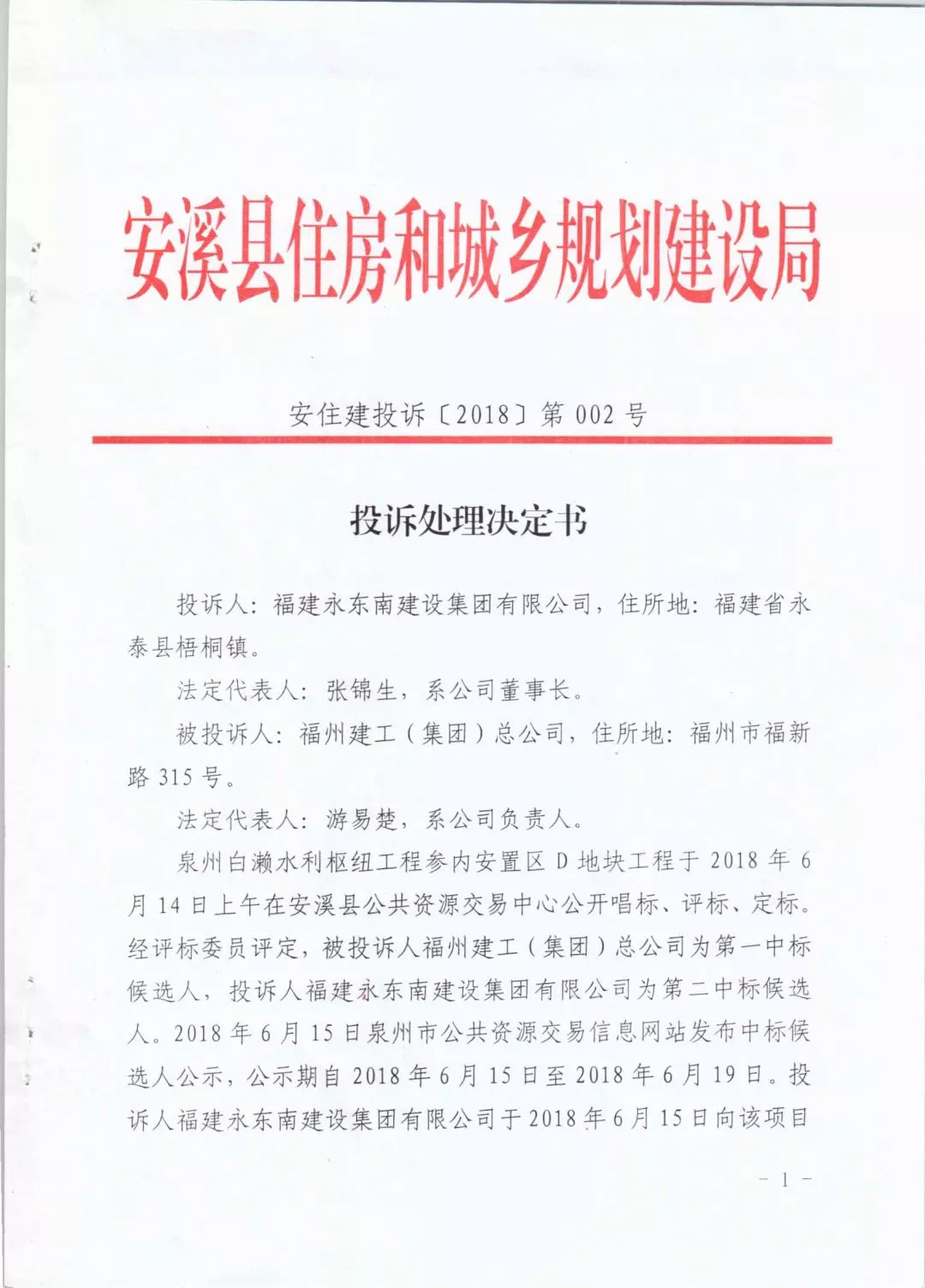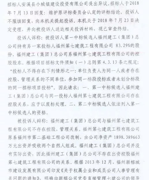 此前,投訴人向招標人提出異議,招標人維護原評標委員會的決定。于是投訴人向項目所在地安溪縣的建設主管部門住建局發起投訴。