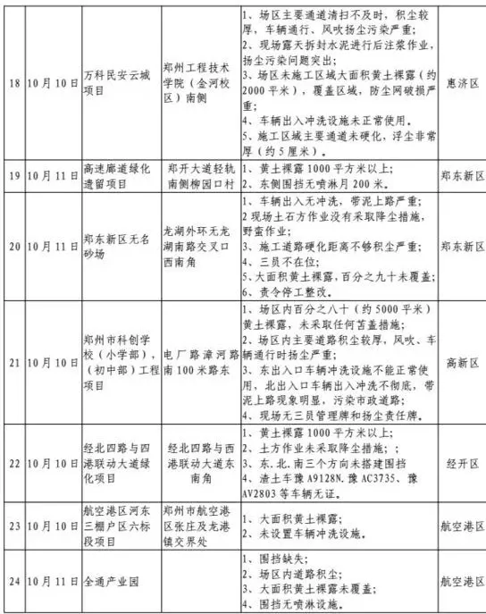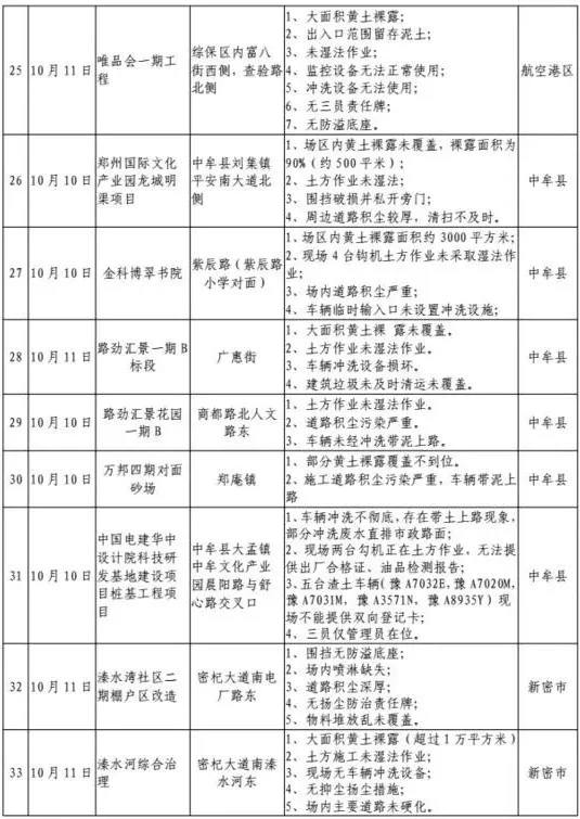 據悉,這些工地存在施工工地失控漏管、道路清掃降塵不及時、屬地及行業監管部門值守人員缺崗等問題。其中,較為揚塵污染問題較為突出的典型問題共40個(問題清單如下)。
