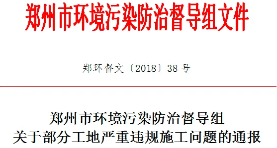 摘要 近日,鄭州市環境污染防治督導組正式發布《關于部分工地嚴重違規施工問題的通報》,一次性對40家嚴重違規施工工地停工整改。