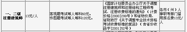 2013年吉林注冊建筑師考試費用