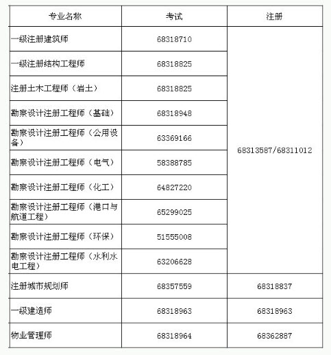 住房城鄉(xiāng)建設(shè)部執(zhí)業(yè)資格注冊中心考試、注冊業(yè)務(wù)咨詢電話