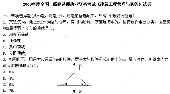 2009年二級建造師考試《管理與實務》考試真題