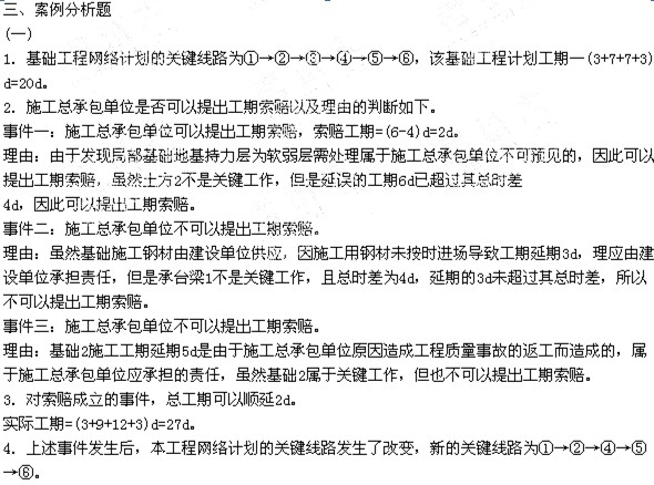 事件二:承臺梁1施工中,因施工用鋼材未按時進場,工期延誤3天。