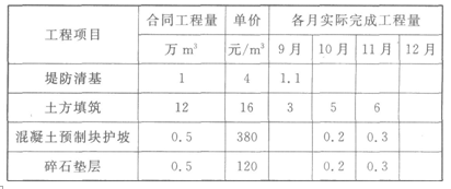 2.11月的時(shí)候土方工程量超出合同總量自15%,達(dá)到16.7%,因此超出部分需要調(diào)價(jià)。12×(1+15%)=13.8(萬m3),前兩個(gè)月土方填筑已完成8萬m3。