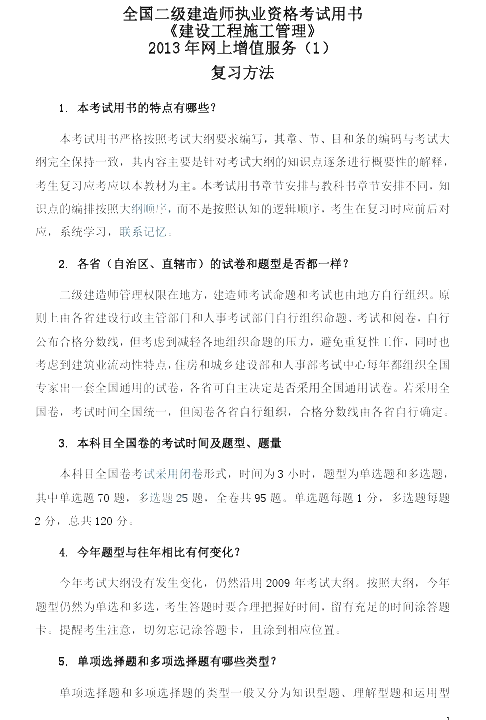 2013年二級建造師施工管理正版教材增值服務(wù)(一)