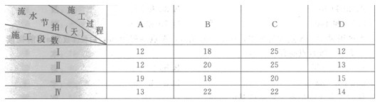 事件一:施工單位將施工作業劃分為A、B、c、D四個施工過程,分別由指定的專業班組進行施工,每天一班工作制,組織無節奏流水施工,流水施工參數見下表: