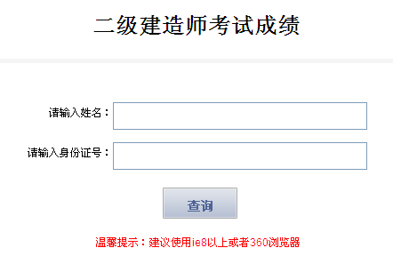 今年的二級建造師考試成績實行網(wǎng)上查詢模式,考生輸入姓名和身份證號方可查詢本人成績,查詢地址為http://111.11.195.3/safeCer.jspx?type=A。成績中的“-1”為“缺考”,“-2”為“違紀”。