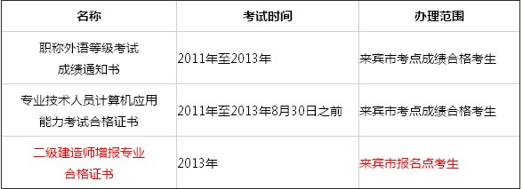 2013來賓二級建造師增報專業(yè)證書領(lǐng)取通知