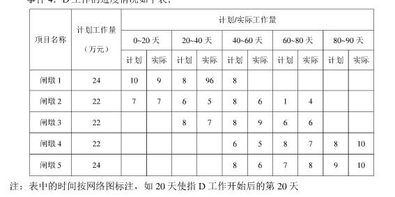 事件4:D工作的進(jìn)度情況如下表: