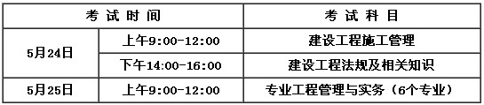 2014年度安徽省二級建造師執(zhí)業(yè)資格考試定于2014年5月24日-25日進(jìn)行?荚嚬苍O(shè)置《建設(shè)工程施工管理》、《建設(shè)工程法規(guī)及相關(guān)知識》、《專業(yè)工程管理與實務(wù)》3個科目,其中《建設(shè)工程施工管理》、《建設(shè)工程法規(guī)及相關(guān)知識》兩個科目均為客觀題,用2B鉛筆在答題卡上作答;《專業(yè)工程管理與實務(wù)》科目分為:公路工程、水利水電工程、市政公用工程、建筑工程、礦業(yè)工程、機(jī)電工程6個專業(yè)類別,考生報名時可根據(jù)實際工作需要選擇其中一個專業(yè)類別,該科目試題包括主觀題和客觀題,客觀題用2B鉛筆作答,主觀題用黑色簽字筆作答。具體考試時間如下: