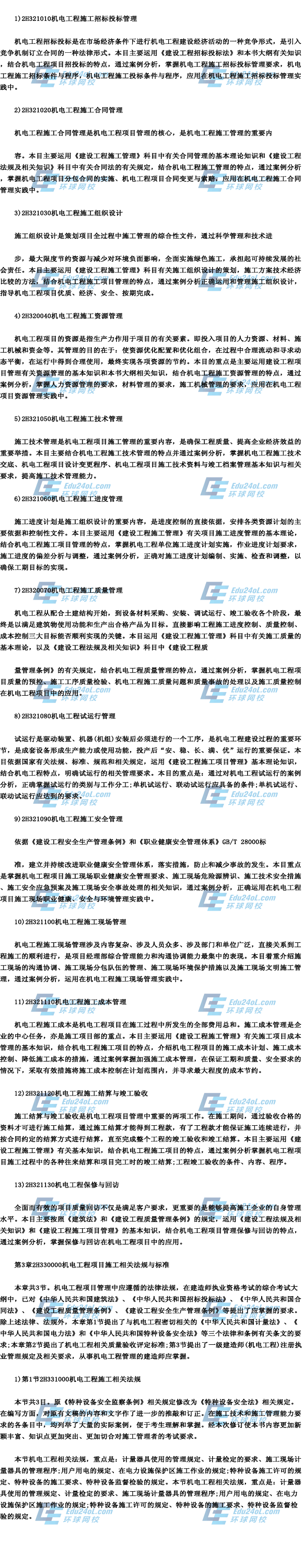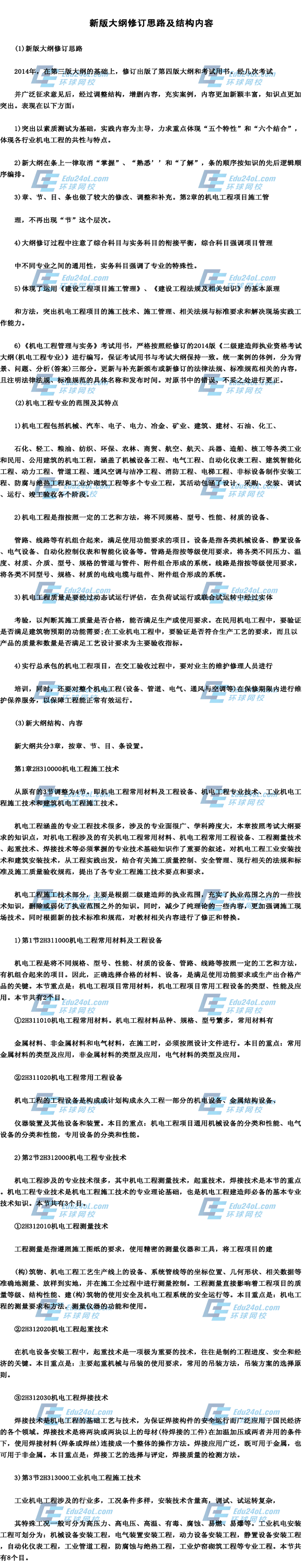 摘要 2014年二級建造師考試大綱《機電實務》