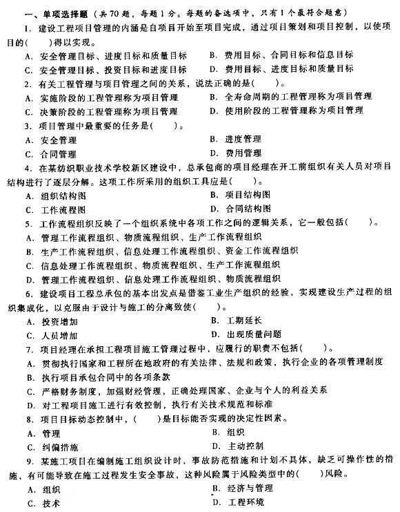 2014二建新教材施工管理模擬題第二套1