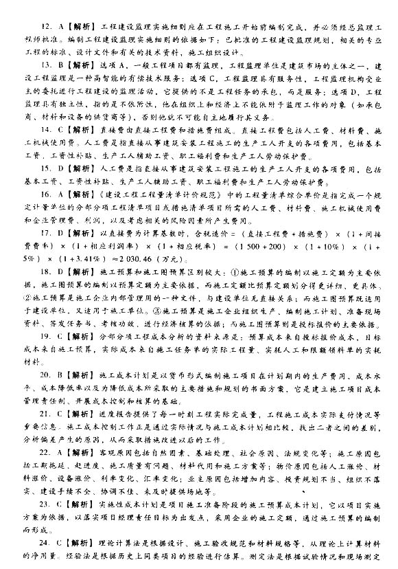 2014二建新教材施工管理模擬題第三套答案2