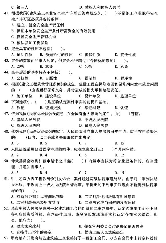 2014二建新教材工程法規模擬題第三套5