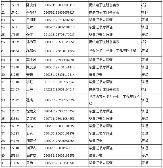 2、所有確認(rèn)為假證的,特別是中專的,已基本和學(xué)校、當(dāng)?shù)亟逃块T核實過,對于確實錯審的極個別人,請考生提供電子注冊備案表(中專提供畢業(yè)生登記表,畢業(yè)生登記表必須加蓋檔案管理部門的印章)。
