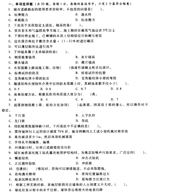 2014二建新教材市政工程實(shí)務(wù)模擬題1