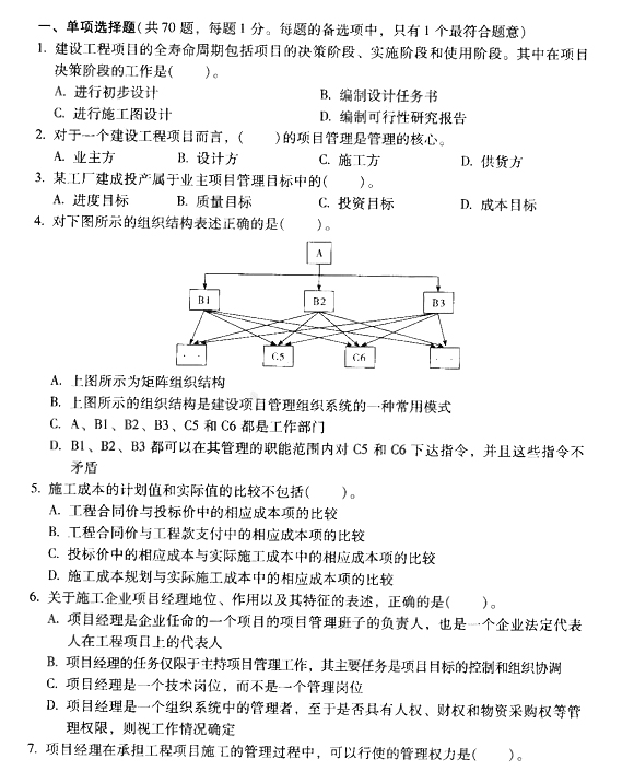 2014二級建造師《施工管理》考前沖刺題及答案(三)