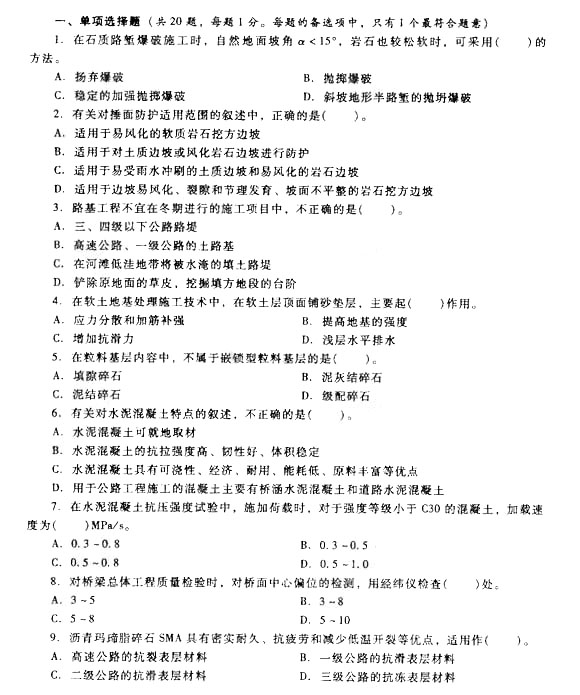 2014二建新教材公路工程實務模擬題第二套1