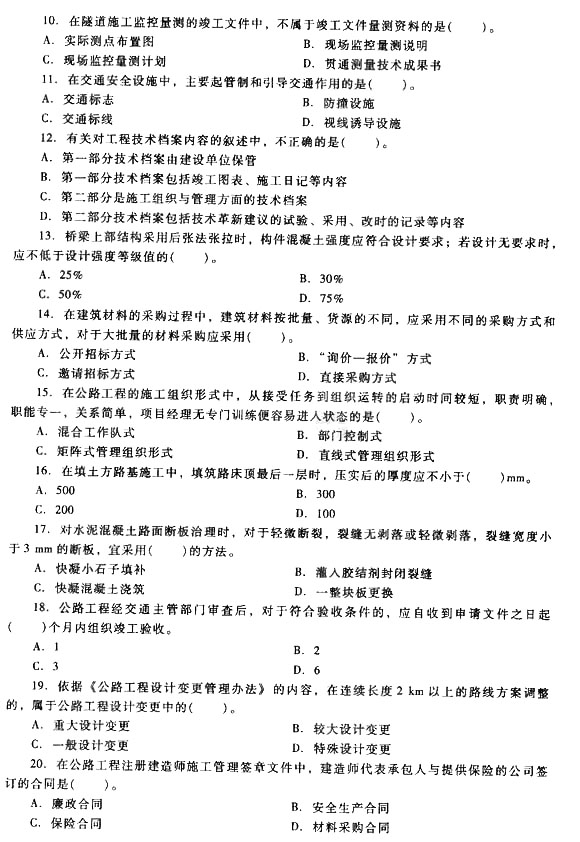 2014二建新教材公路工程實(shí)務(wù)模擬題第二套2