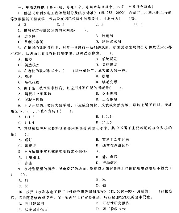 2014二建新教材水利水電實務模擬題1