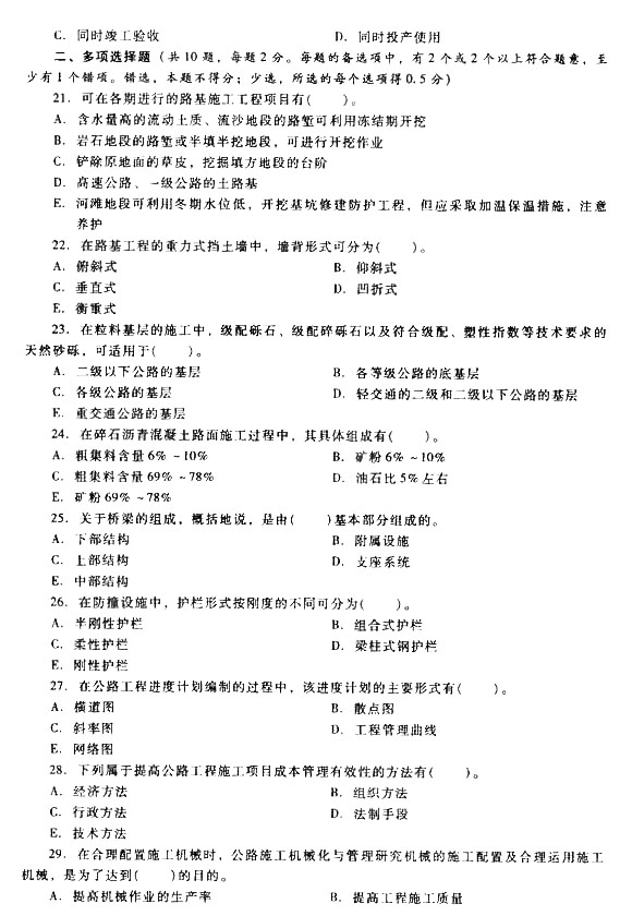 2014二建新教材公路工程模擬題第三套3