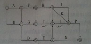【解析】雙代號(hào)網(wǎng)絡(luò)計(jì)劃的繪圖規(guī)則:(1)雙代號(hào)網(wǎng)絡(luò)圖必須正確表達(dá)已定的邏輯關(guān)系;(2)雙代號(hào)網(wǎng)絡(luò)圖中,嚴(yán)禁出現(xiàn)循環(huán)回路;(3)雙代號(hào)網(wǎng)絡(luò)圖中,在節(jié)點(diǎn)之間嚴(yán)禁出現(xiàn)帶雙向箭頭或無(wú)箭頭的連線;(4)雙代號(hào)網(wǎng)絡(luò)圖中,嚴(yán)禁出現(xiàn)沒(méi)有箭頭節(jié)點(diǎn)或沒(méi)有箭尾節(jié)點(diǎn)的箭線;(5)當(dāng)雙代號(hào)網(wǎng)絡(luò)圖的某些節(jié)點(diǎn)有多條外向箭線或多條內(nèi)向箭線時(shí),為使圖形簡(jiǎn)潔,可使用母線法繪制;(6)繪制網(wǎng)絡(luò)圖時(shí),箭線不宜交叉;(7)雙代號(hào)網(wǎng)絡(luò)圖中應(yīng)只有一個(gè)起點(diǎn)節(jié)點(diǎn)和一個(gè)終點(diǎn)節(jié)點(diǎn),而其他所有節(jié)點(diǎn)均應(yīng)是中間節(jié)點(diǎn);(8)雙代號(hào)網(wǎng)絡(luò)圖應(yīng)條理清楚,布局合理。網(wǎng)絡(luò)圖節(jié)點(diǎn)的編號(hào)順序應(yīng)從小到大,可不連續(xù),但不允許重復(fù)。圖中出現(xiàn)多個(gè)終點(diǎn)節(jié)點(diǎn)9和10 ,重復(fù)節(jié)點(diǎn)編號(hào)7和7,相同工作節(jié)點(diǎn)編號(hào)J和K。