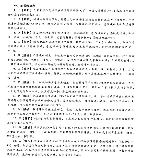 2014二建新教材水利水電實(shí)務(wù)摸底卷8
