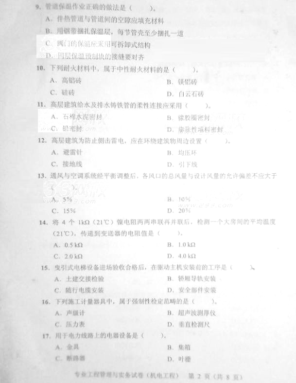 2014二級建造師真題及答案-機電(網友版)