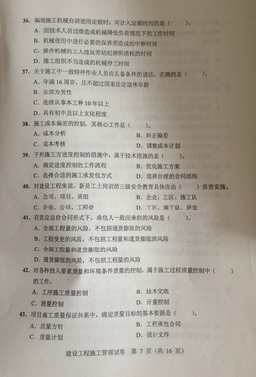 2014二級建造師施工管理真題(32-43)