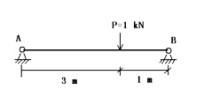 但這道題也可不必計(jì)算,由分析得答案。因支座A、B反力總和為1 kN,故RA不可能為1kN;又由荷載P不作用于跨中,RA與RB不應(yīng)相等,故RA不可能是1/2 kN.剩下3/4與1/4中挑一個(gè),顯然RA離P作用點(diǎn)較遠(yuǎn),受力應(yīng)小一點(diǎn),故只有1/4是正確的,答案應(yīng)為D.