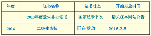 2014年四川成都二級(jí)建造師合格證書(shū)發(fā)放通知