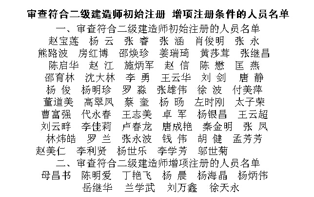 附件:審查符合二級建造師初始注冊增項注冊條件的人員名單