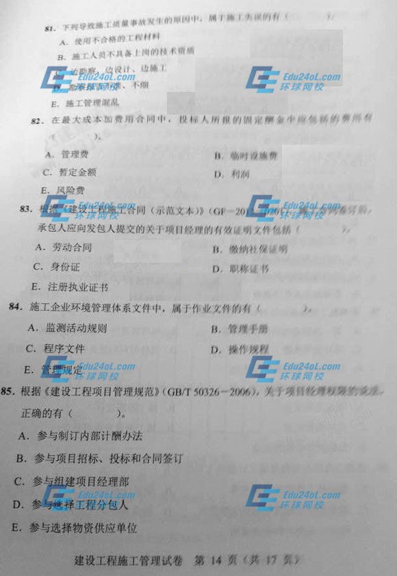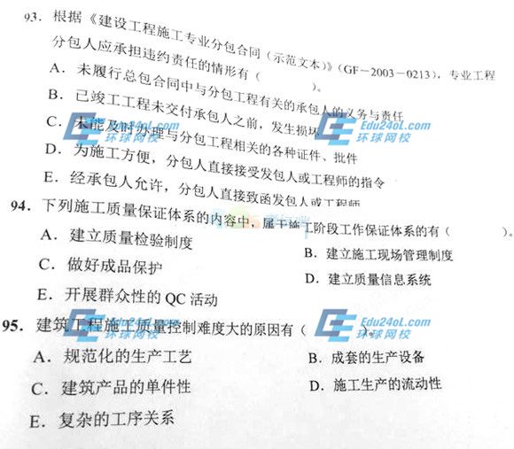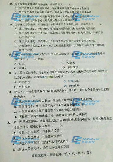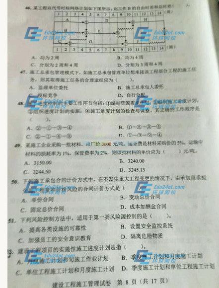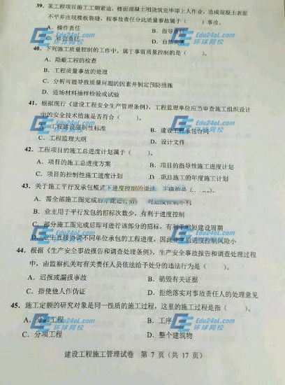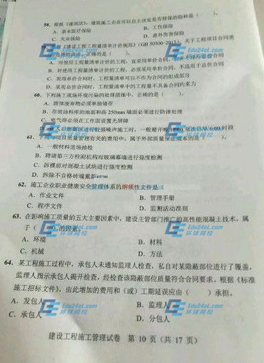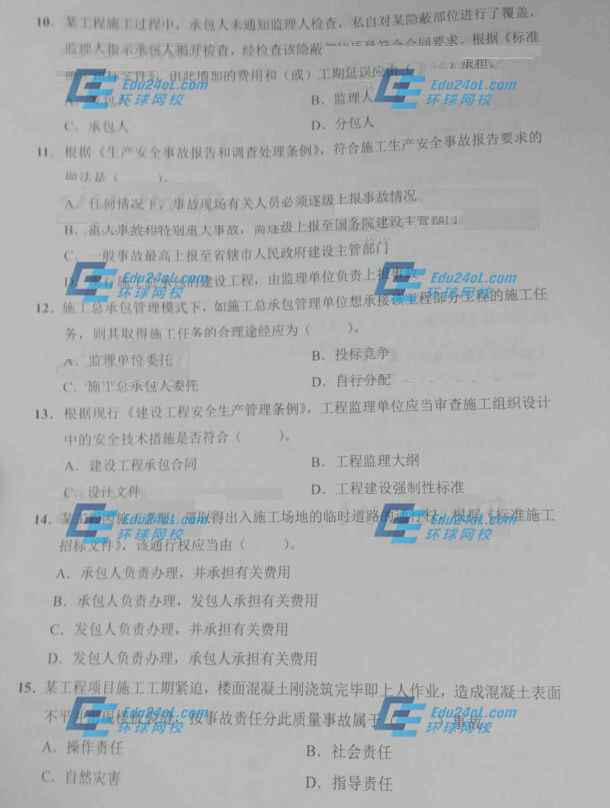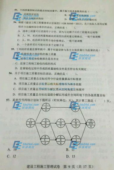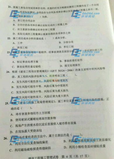 摘要 【摘要】:2015年二級(jí)建造師考試已經(jīng)進(jìn)入倒計(jì)時(shí),備考迫在眉睫,環(huán)球網(wǎng)校針對(duì)不同的學(xué)員學(xué)習(xí)情況,推出不同班次的輔導(dǎo),在此小編為各位考生提供了2015年二級(jí)建造師考試《施工管理》真題(圖片版),同時(shí)為各位