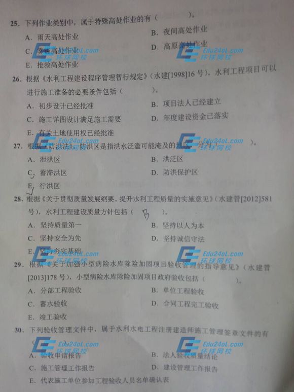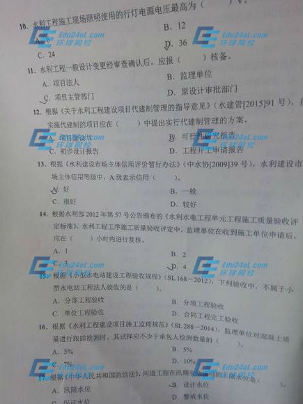 【摘要】二級建造師考試分為基礎科目與專業實務,掌握二級建造師考試考點、歷年真題,對于知識點的融會貫通至關重要。環球網校二級建造師考試頻道特地整理二級建造師考試考點,本文為“2015年二級建造師考試《水利水電》真題(圖片版)”,希望能助各位二級建造師考生一臂之力!