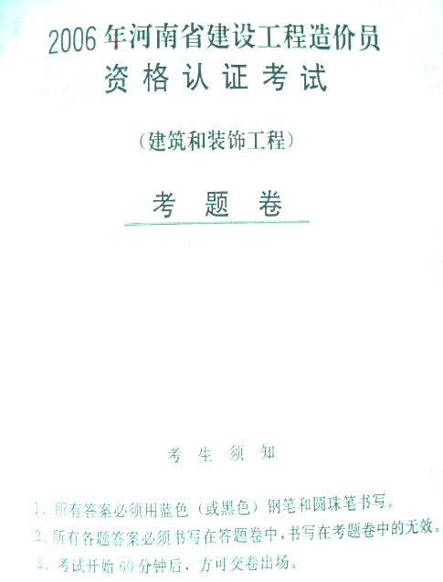 2006年河南造價(jià)員建筑裝飾工程試卷(1)