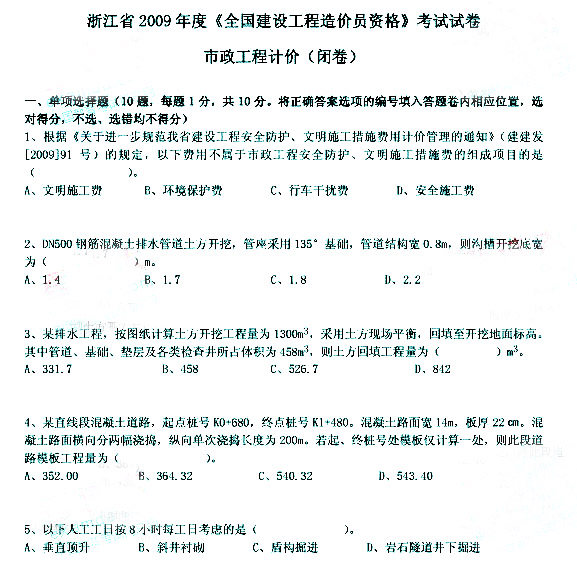 當前位置: 首頁 > 二級造價工程師 > 二級造價工程師歷年試題 > 2009年浙江造價員市政工程試卷及答案(1)