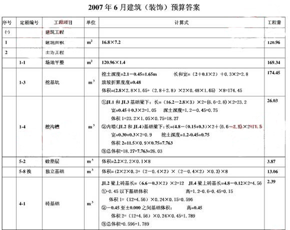 2007年6月全國造價員建筑裝飾預算試卷答案(1)