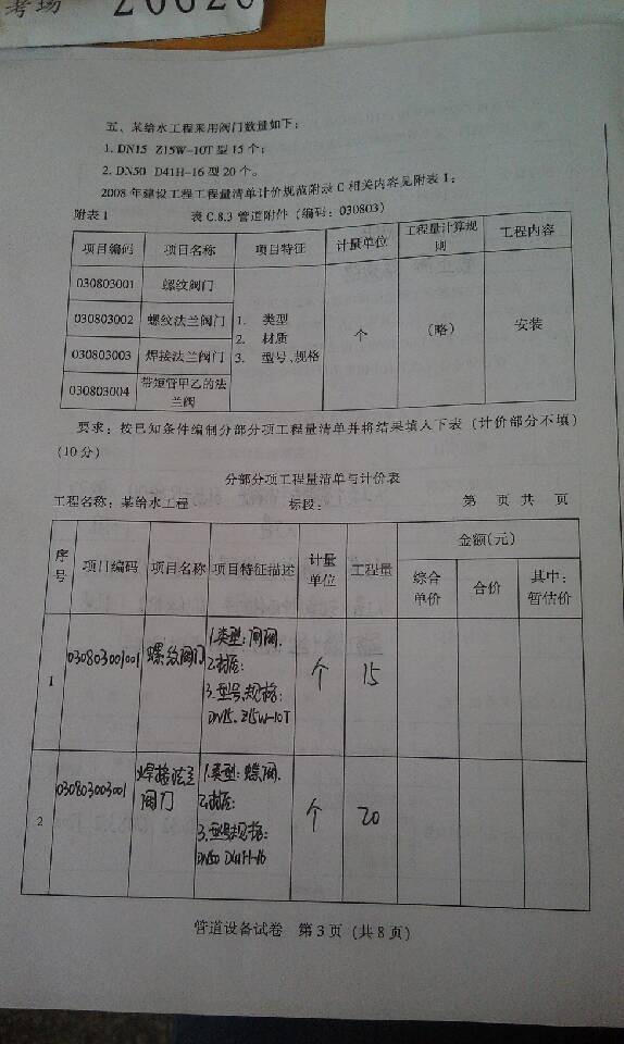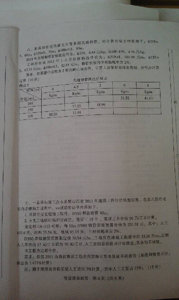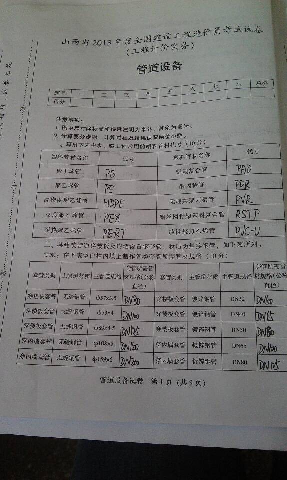 2013年山西造價員《工程計價實務》真題(管道專業)