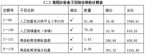 請按以上施工方案以及《江蘇省建筑與裝飾工程計價表》(2004)計算規則計算土方開挖、土方回填、砼墊層以及砼基礎(其余不予考慮)的計價表工程量并填寫相應的計價表子目編號、名稱及綜合單價。