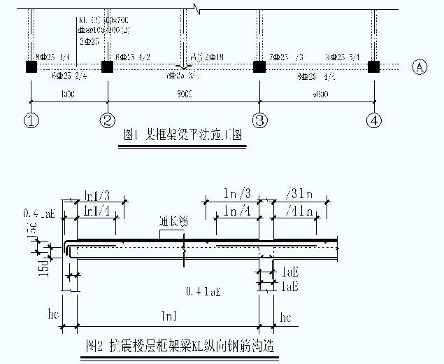 本框架梁箍筋長度計算公式為:(梁高-2×保護層厚度+梁寬-2×保護層厚度)×2+24×箍筋直徑,箍筋加密區長度為本框架梁梁高的1.5倍,箍筋根數計算公式分別為:【(加密區長度-50)/加密間距】+1及(非加密區長度/非加密間距-1)。縱向受力鋼筋搭接區箍筋構造不予考慮。(鋼筋理論重量:25=3.850kg/m,18=1.998kg/m,8=0.395kg/m,計算結果保留小數點后2位。)