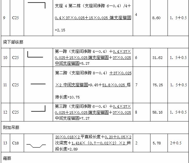 附加吊筋單根長度為2分,根數0.5分,計2.5分