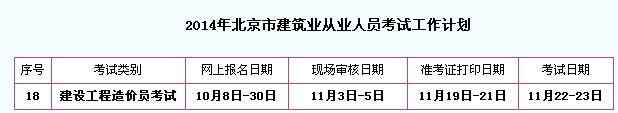 摘要 北京2014年造價員考試報名時間為10月8日-30日