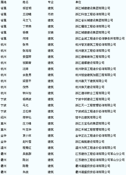 摘要 2014年浙江省第二季度造價員跨省變更測試名單