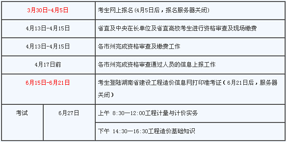 (3)資格審查和現場繳費。各市州報考人員請于4月13日-4月15日到各市、州造價管理站進行資格審查和現場繳費。省直和中央在長單位報考人員于4月13日至4月15日到省造價管理協會(長沙市高升路268號和馨佳園1棟301室)進行資格審查和現場繳費。各市州造價管理站需做好所屬地區資格審查通過人員的信息上報工作,報送省造價協會的時間為:4月16日-17日,咨詢電話:0731-88950516。