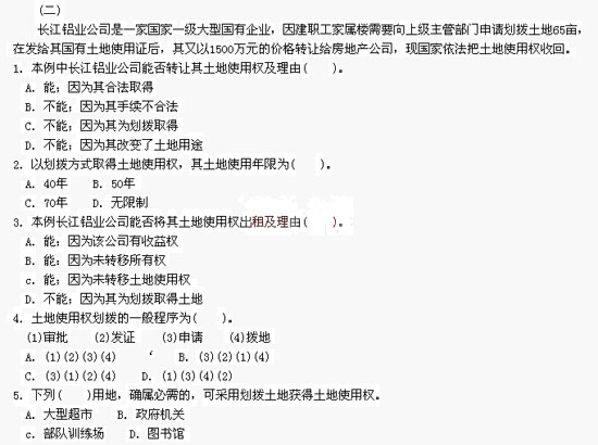 2.由于s是大城市,該市區(qū)的商業(yè)用地使用權出讓應當采用( )方式出讓。
