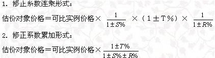估價對象價格=可比實例價格×(1+交易情況修正系數+交 易日期修正系數+房地產狀況修正系數)