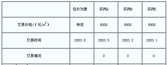 4.比準價格計算結果:(6617+6344+6201)/3=6387元/m2