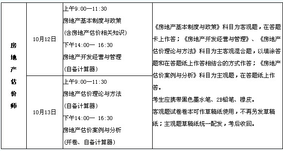 - 2026年房地產估價師考試時間2025-11-07
