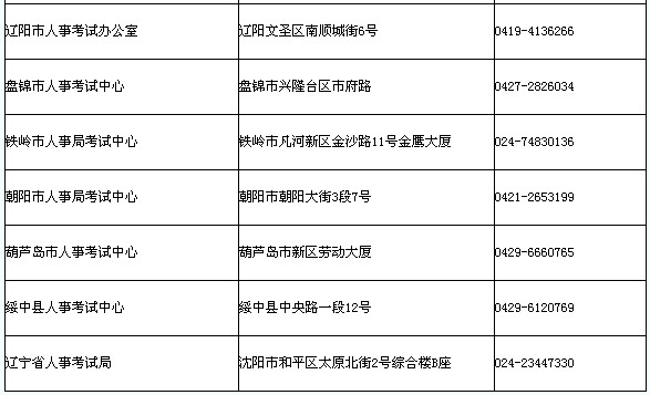全省人事考試部門辦公地址和考務咨詢電話